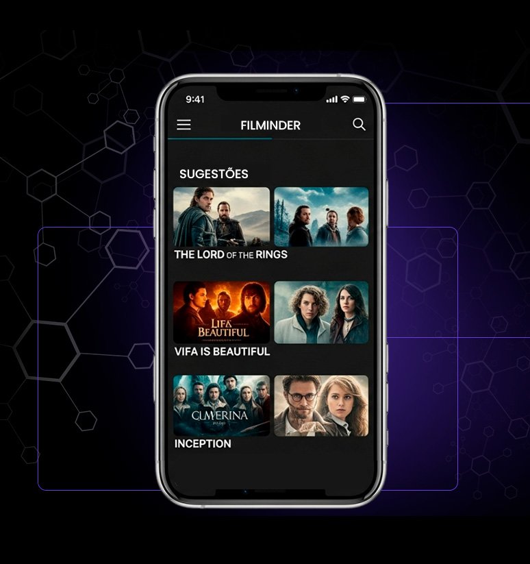 O Filminder é um aplicativo inteligente que acaba com a indecisão na hora de escolher o que assistir. Através de um quiz divertido e do uso de inteligência artificial, ele entende seu gosto e te recomenda filmes e séries sob medida, em apenas alguns segundos.